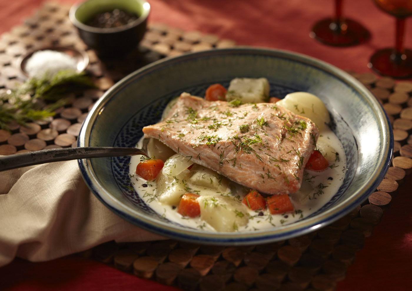 - Simmer for 5 minutes, stir in a knob of Butter, check the Salt level and add more if needed then serve with the rest of the Dill sprinkled on top.
