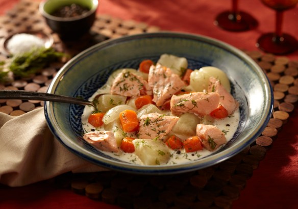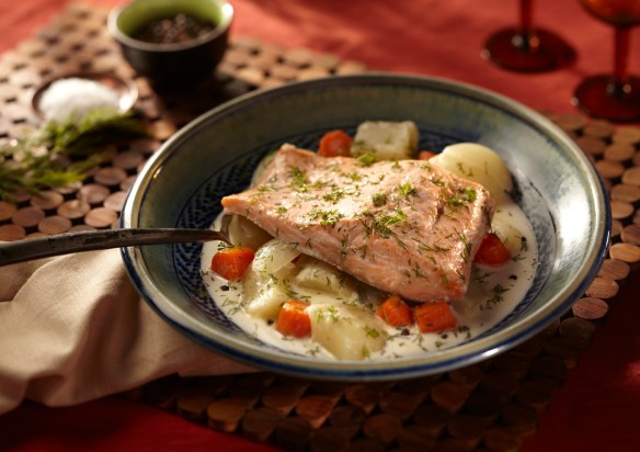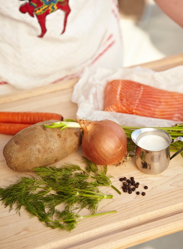 We made this Salmon Finnish Fish Stew. Beth shared stories of her dad making this fish stew on the campfire while they were camping. Using what-ever fish they had caught that day and some basic ingredients you just boil all the ingredients over the camp fire. We ate some stew after we photographed it, it is quite good and I can see it would be a great dinner at the camp site. Now, I just need to learn how to fish.