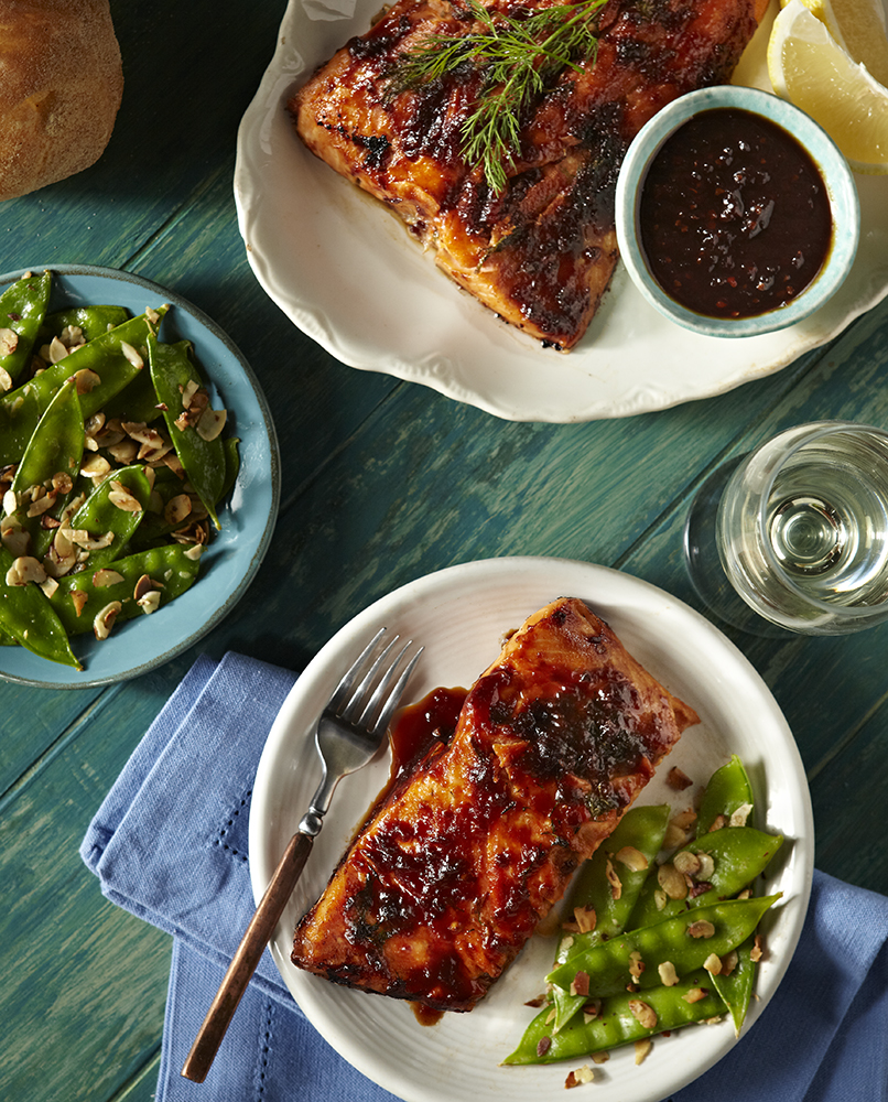 Oven: Preheat oven to 400 degrees. Cover baking sheet with aluminum foil. Take salmon out of the brine and put skin side down on baking sheet. Bake for about 20 minutes. Brush the Rooster Sauce on salmon flesh side for about the last 2-5 minutes. The filet will be done when fat starts to bubble out. Let rest for 5 minutes before serving.