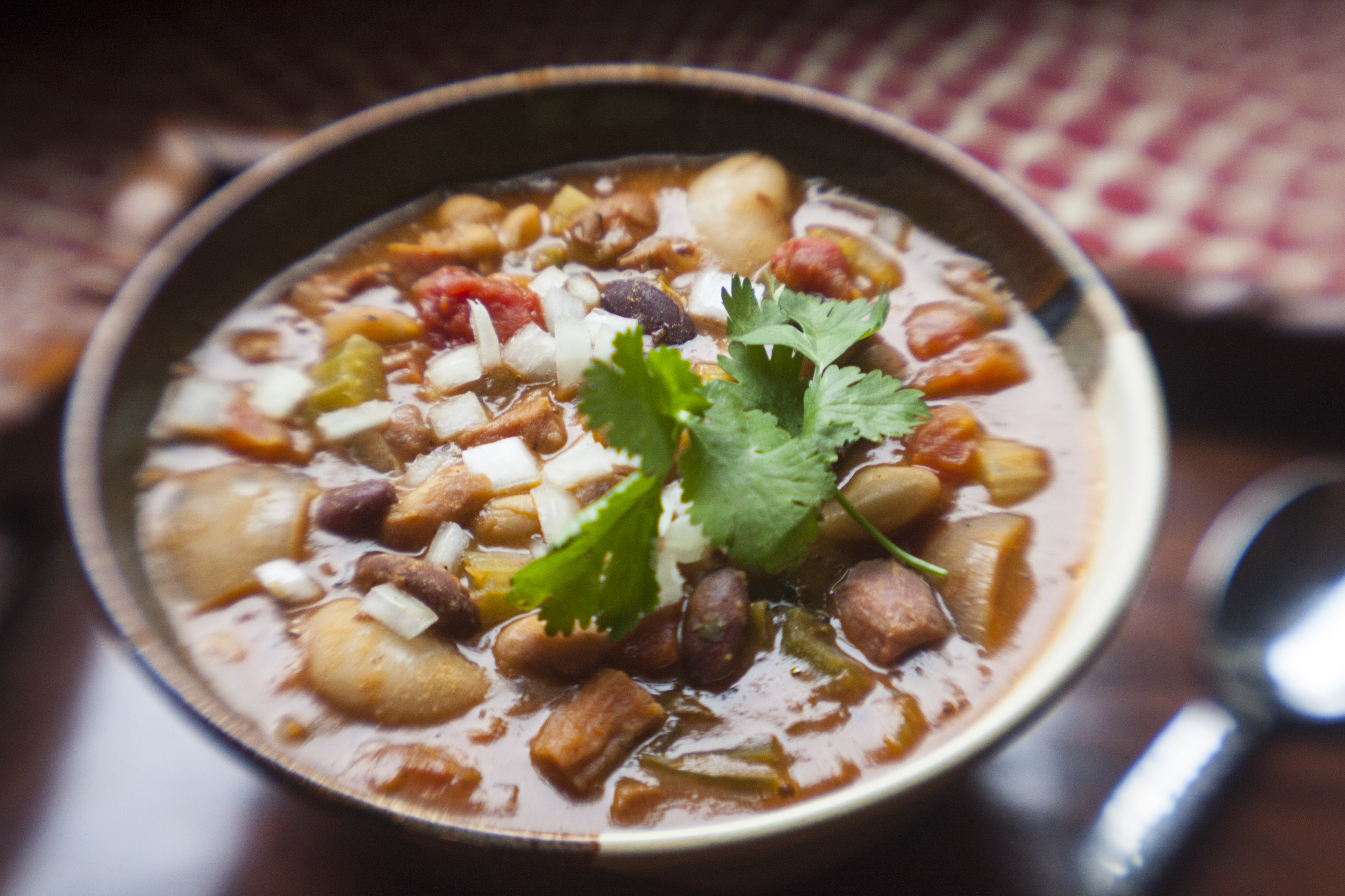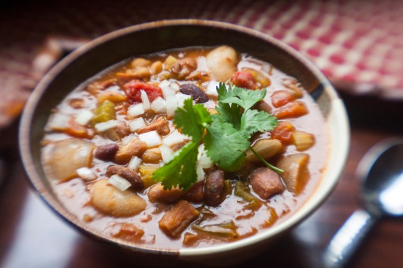 - Add cilantro during last five minutes of cooking. Top with hot sauce and serve over rice if you want, and enjoy!