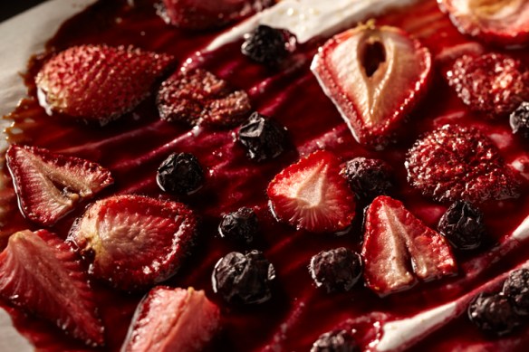 I have been intrigued by these roasted and grilled fruits, so far all I’ve ever done is grill up some pineapple. I was ready to expand my horizons. I teamed up with Maggie the Food Stylist and we came up with this recipe. We started by going on-line and searching for some ideas. We found these recipes for roasted strawberries.