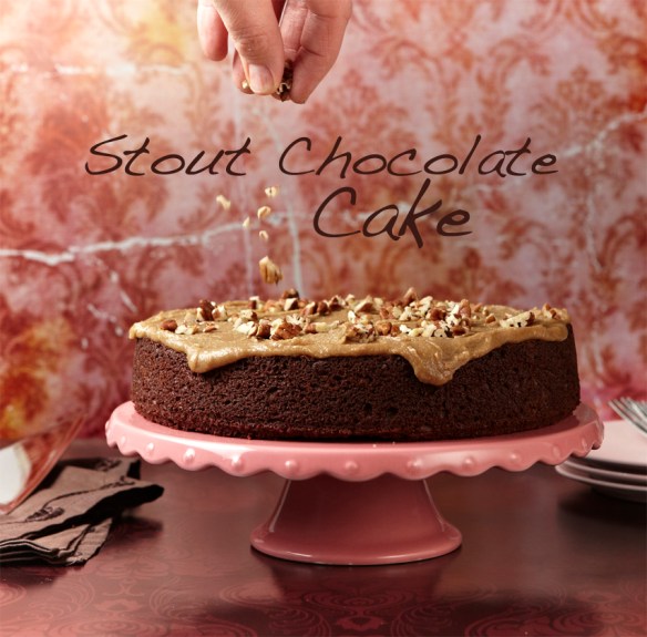 I’ve been waiting to make this cake, and finally it was near valentines day and my sisters birthday-done.  A lover of chocolate and good beer a perfect combination.  The finaI creation with pecans and Carmel whiskey frosting and butter cream frosting on top. I stopped at the liquor store and found a four pack of Young’s Double Chocolate Stout, sounds perfect.