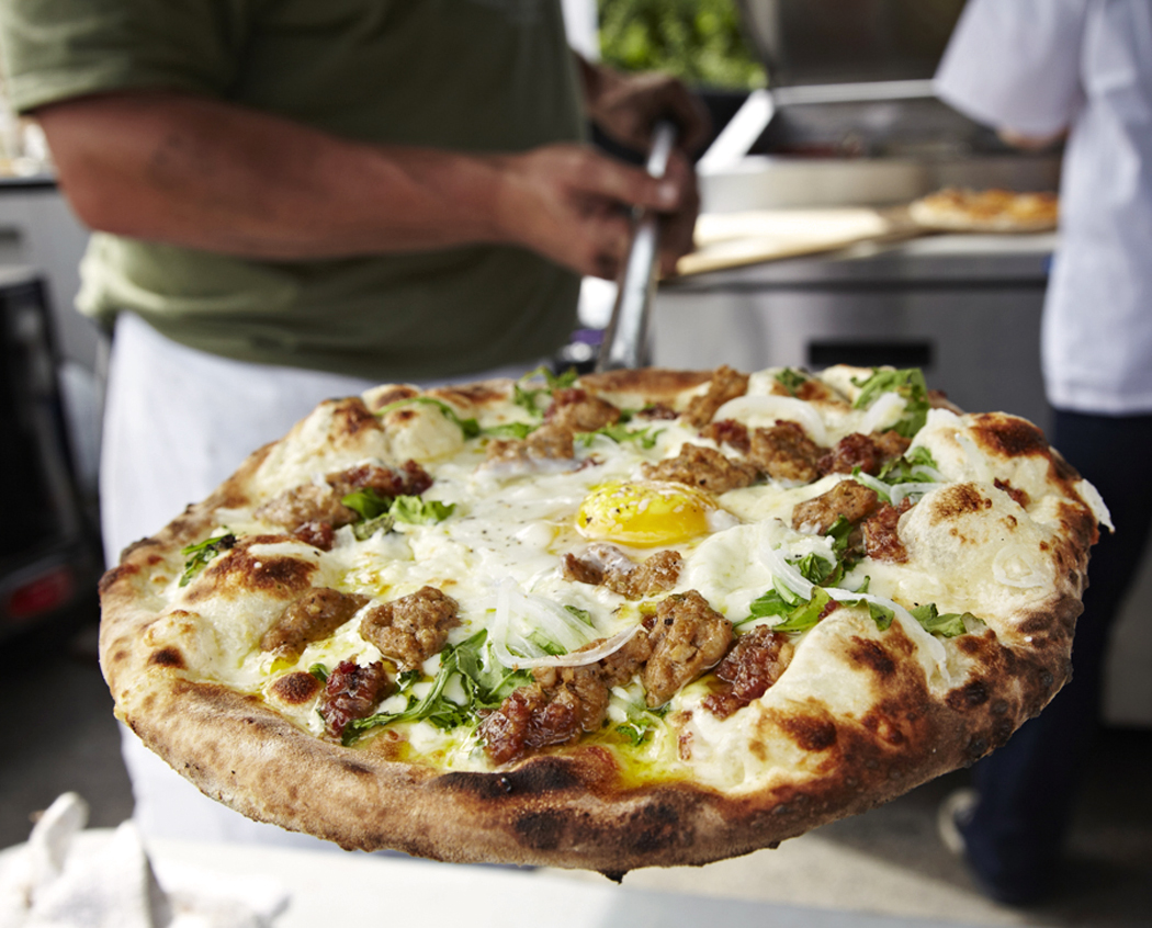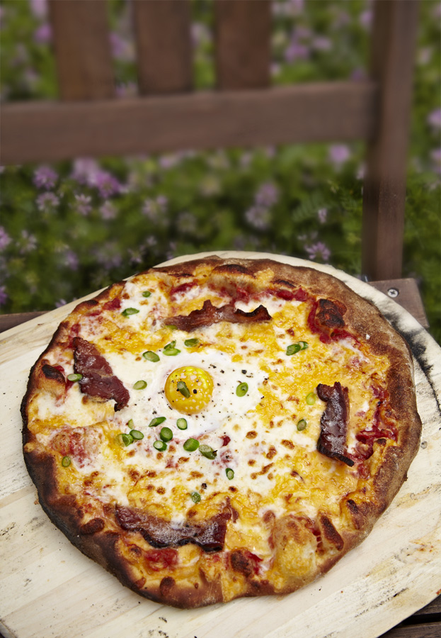 breakfast menu-Lil Red Rooster. It had bacon and egg on the pizza which came from the Sunshine Harvest Farm vendor at the Fulton Farmers Market. It was fantastic, fresh tasting ingredients and awesome crust. With the sunny side up egg just how I like it. I think this might become a regular saturday stop.