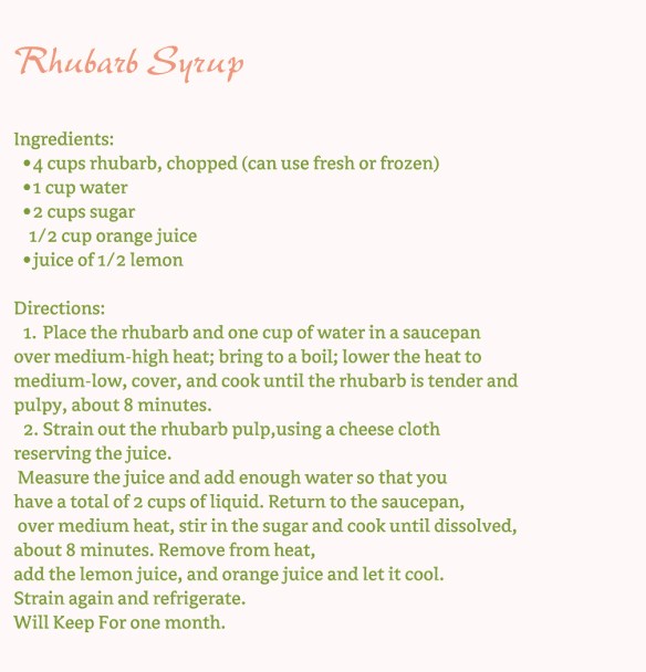 It’s time to harvest the rhubarb, and I am looking for something new to try.  I had tried a friends rhubarbtini last summer, so after some research I came up with this rhubarb simple syrup.  And then use the rhubarb simple syrup as your mixology base, the combinations are endless-have fun.  We tried several different recipes and I will share with you the top two, and they are equally fabulous.
